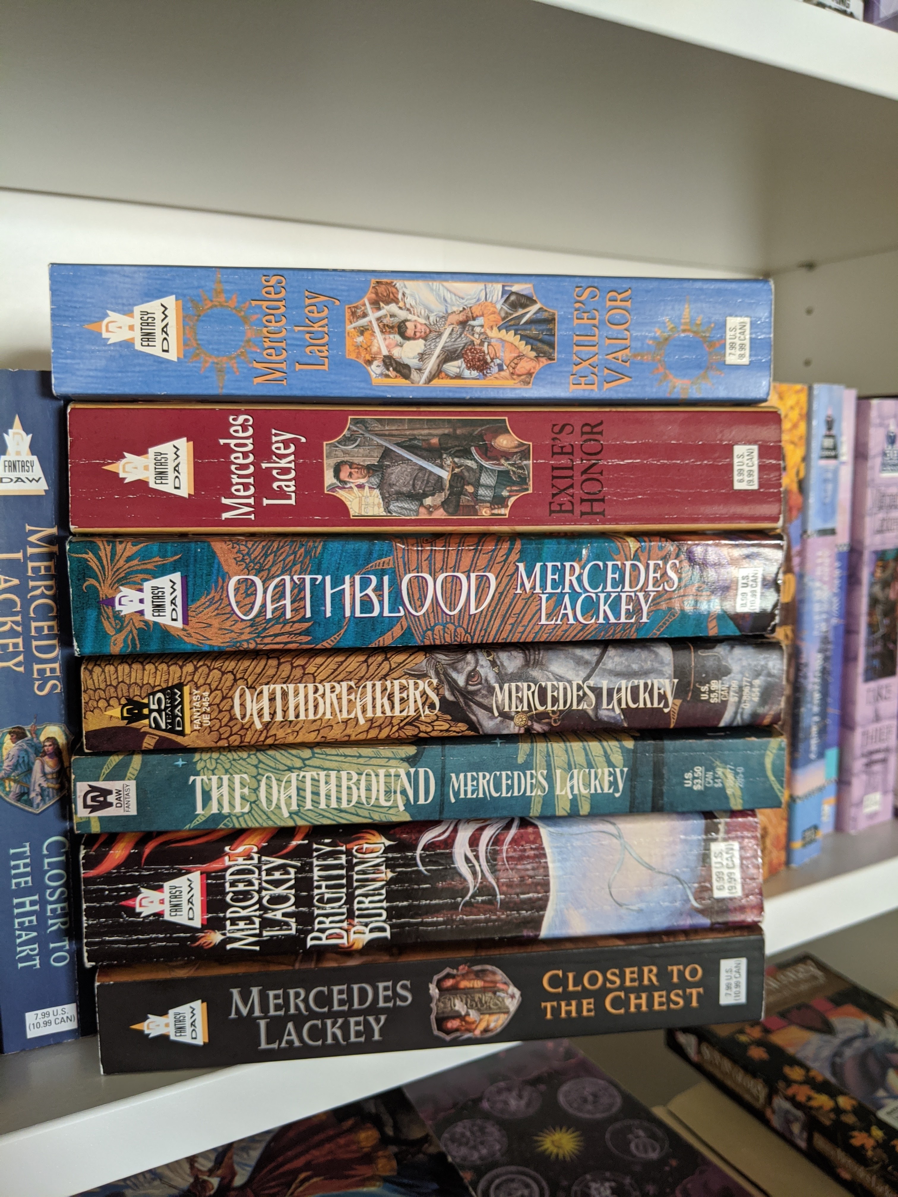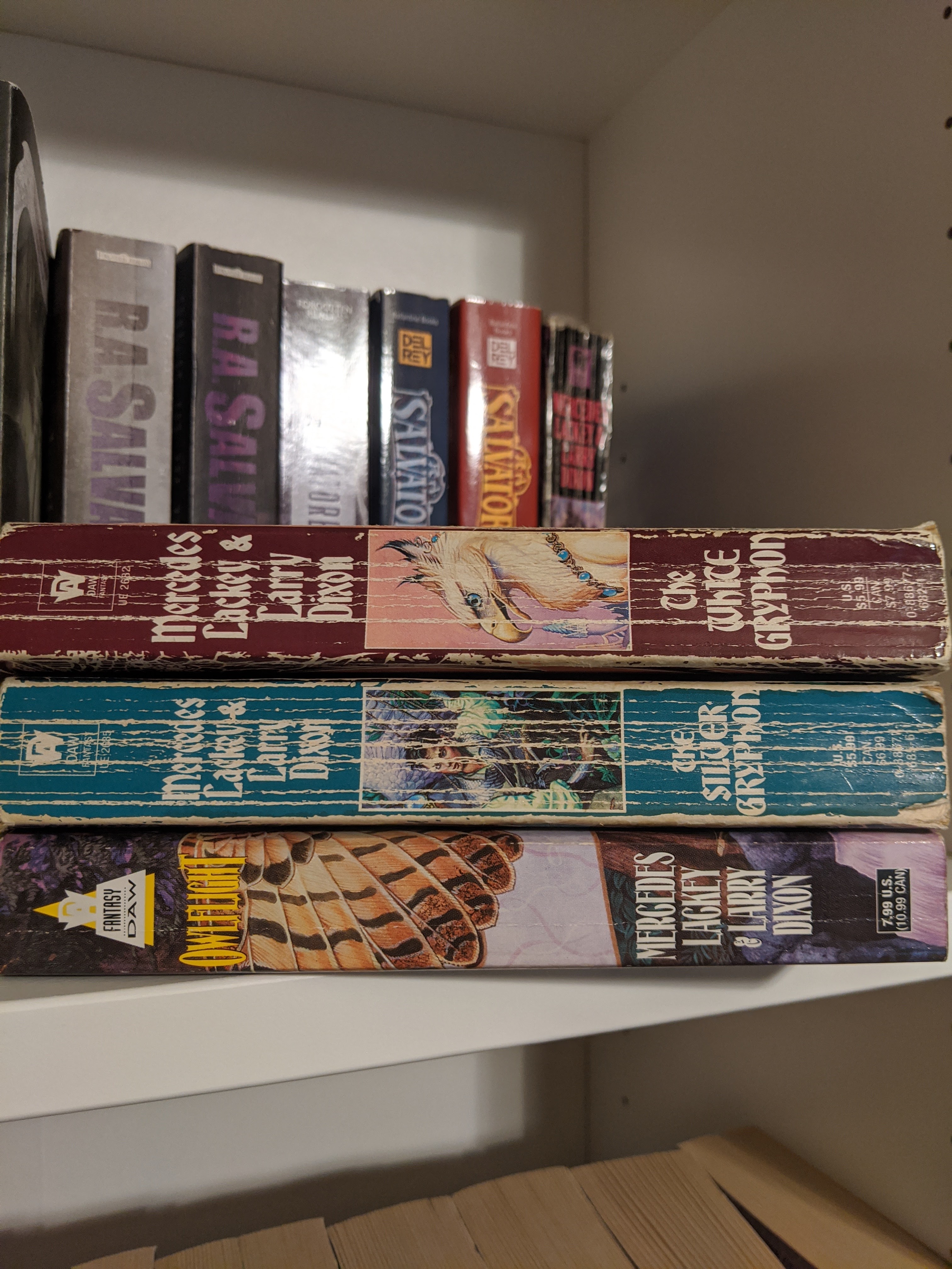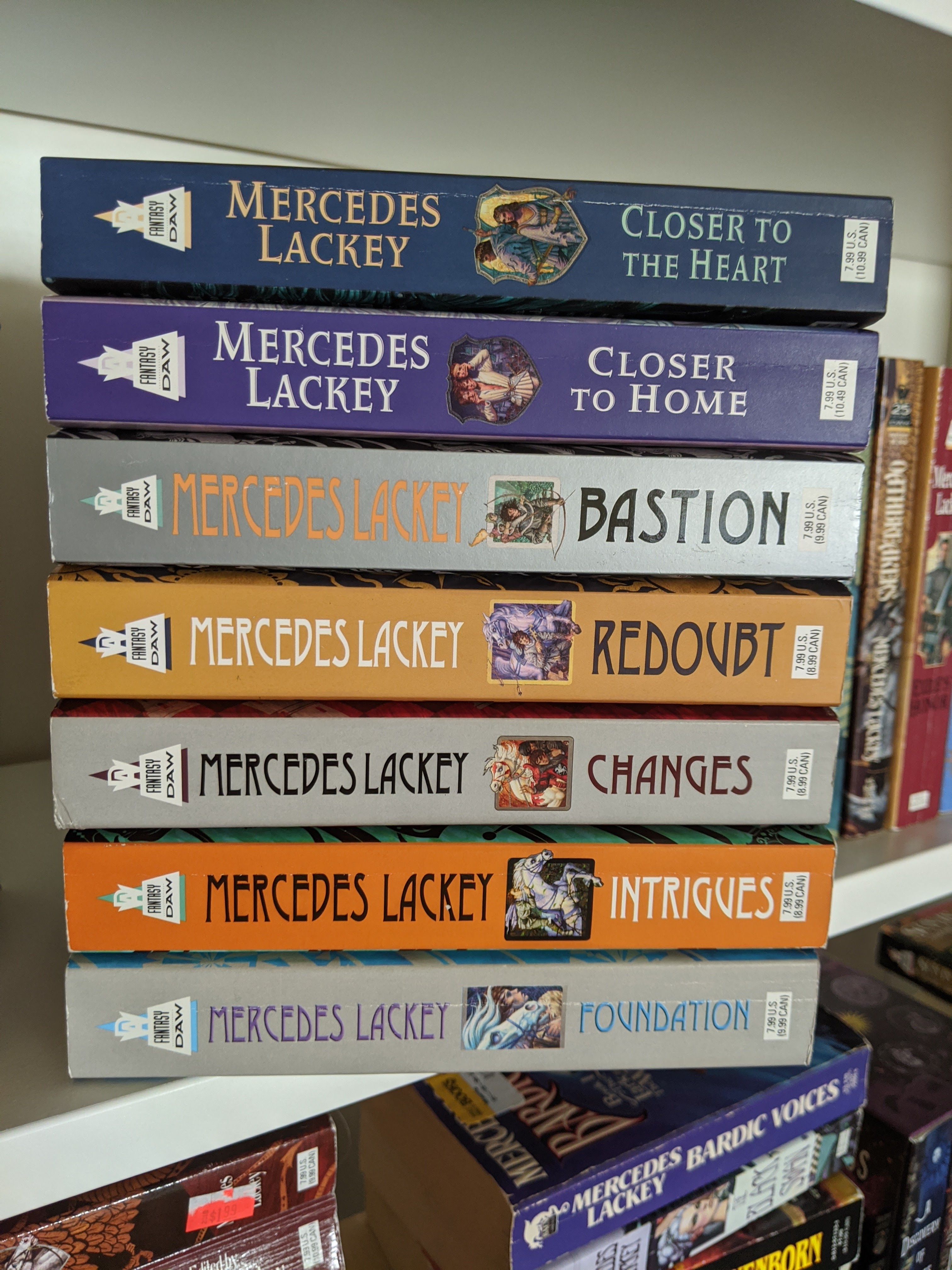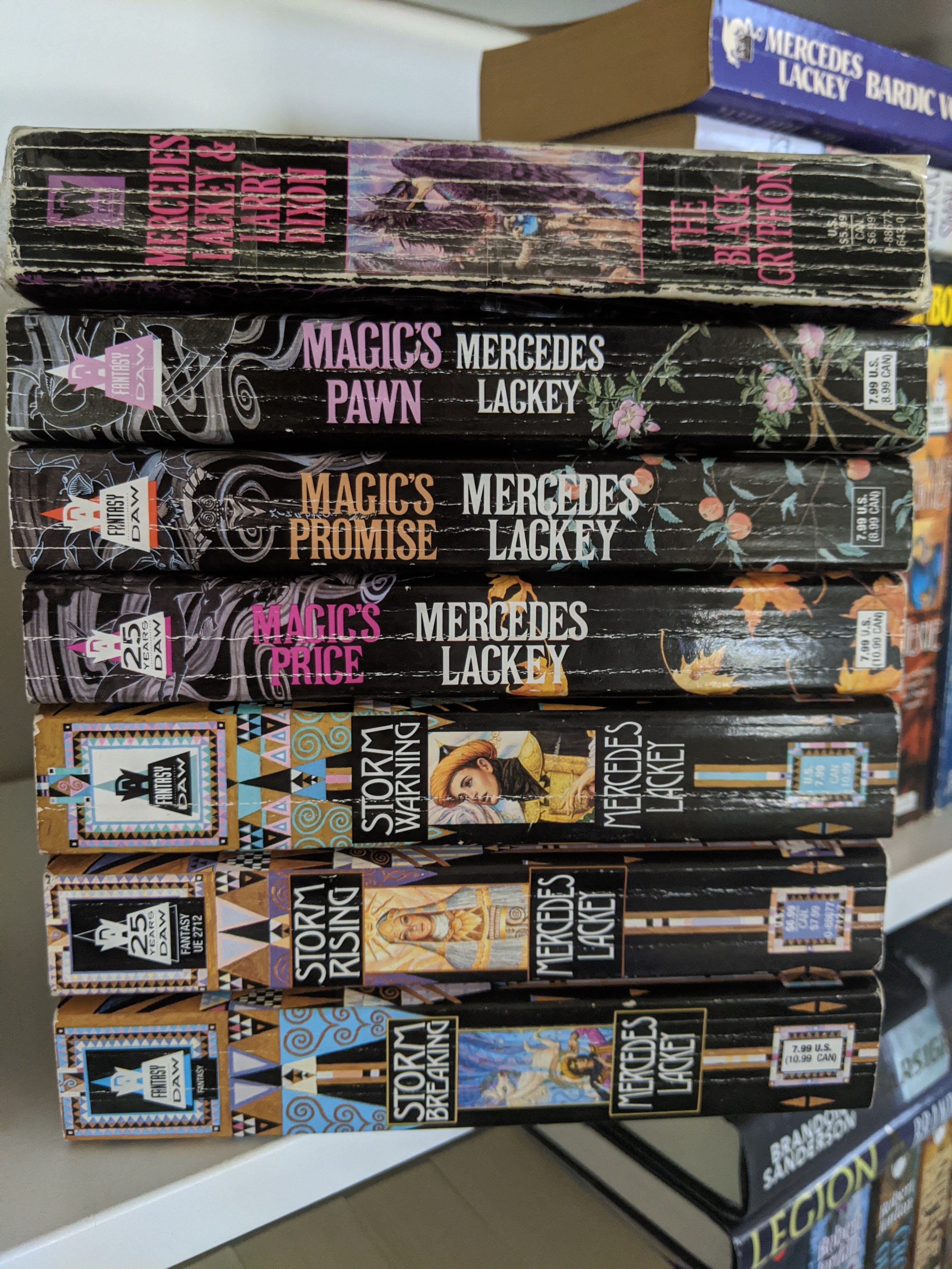 This week was really all about some of my favorite books in the Heralds of Valdemar series. The Last Herald-Mage trilogy and The Mage Wars trilogy. I love these books to the point where one of them is held together by packing tape because the cover was starting to come off. Nope, I haven’t read The Black Gryphon a lot. Not at all.