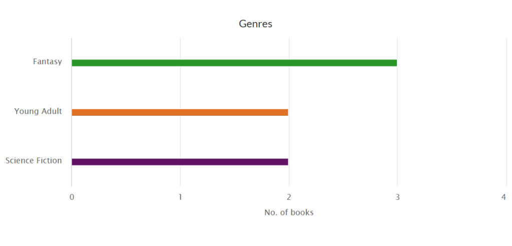This website separates books into their different genres for you, and the books can have more than one genre, so that explains, while I read 5 books, the stats say I read 7. Even I got confused there for a minute.