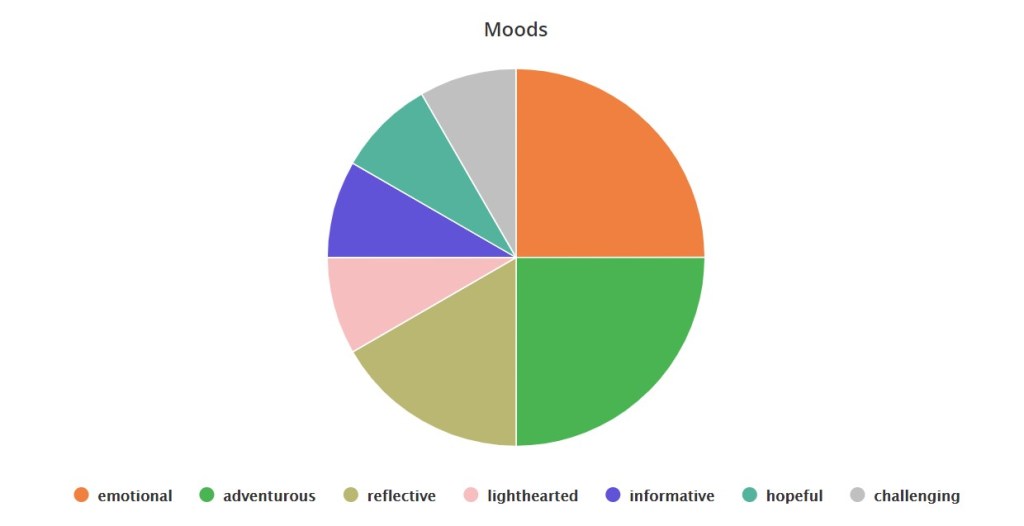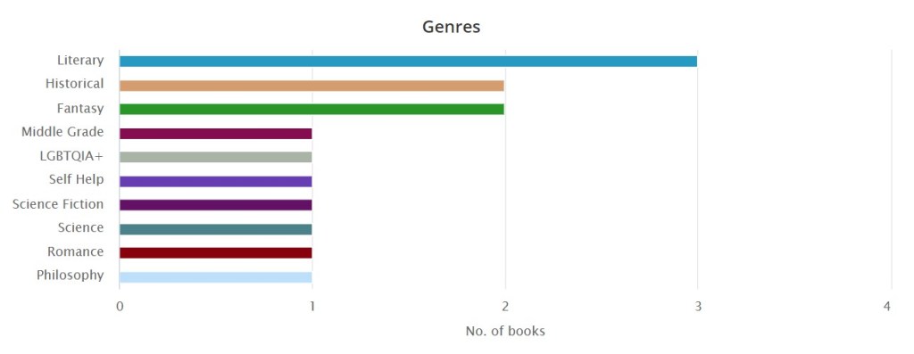 Now on to everyone’s favorite part of the post, the stats! As always, the stats come from The Storygraph. Want to see yours? What are you waiting for? Go join!