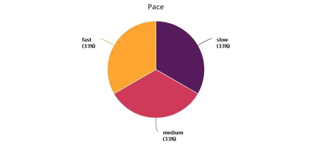 The pace of my books was split evenly between the three categories. I kind of love that.