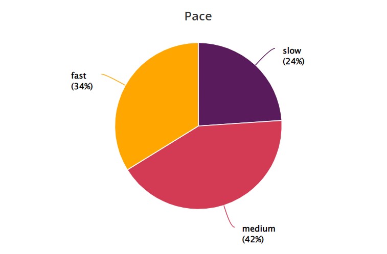 So it would seem that I read 30 medium-paced books this year, with fast coming in behind it at 24 books, followed up by slow books at 17 tomes.